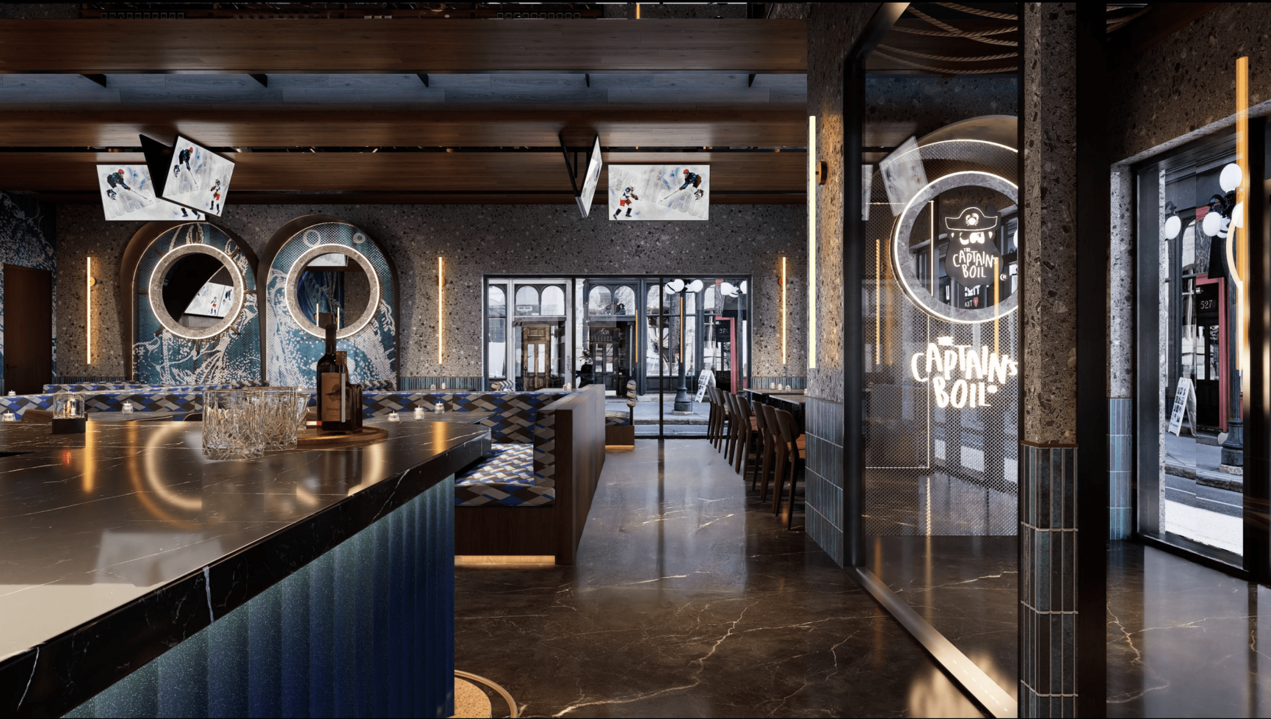 Building on the brand’s signature nautical identity, this location reinforces a consistent look and feel across all Captain’s Boil spaces. Warm materials, industrial elements, and ship-inspired details come together to create a familiar, social setting where guests feel instantly at home.